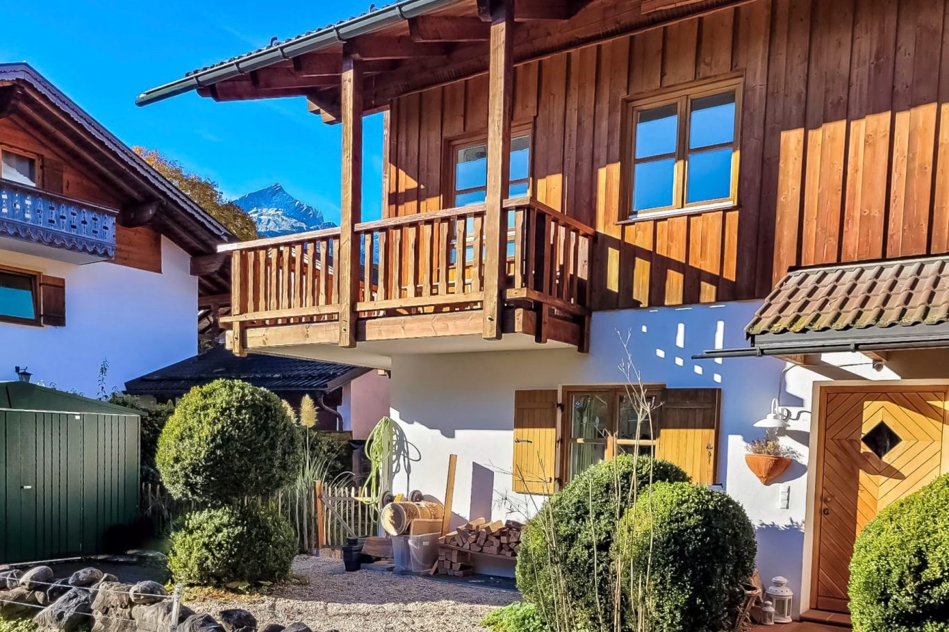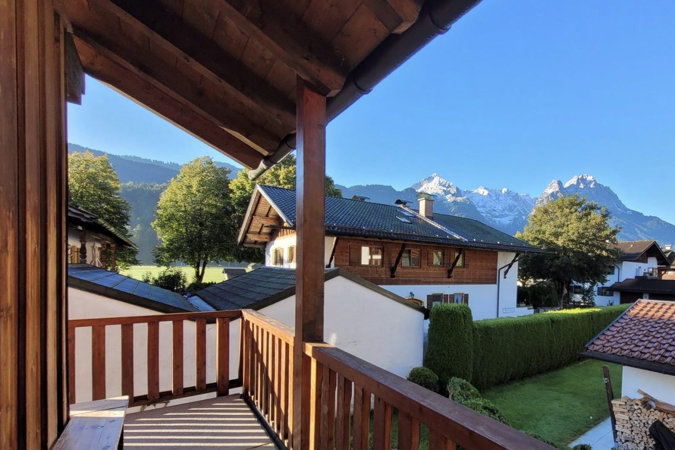 - Umlaufender Balkon mit Blick auf die Zugspitze
