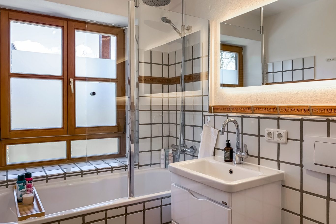 - Badewanne mit Regendusche