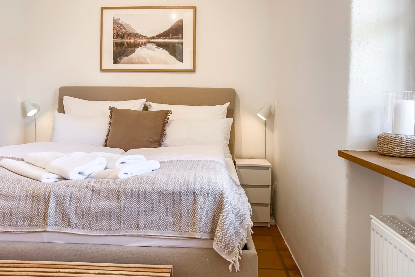Damit Du erholt und voller Energie in den Tag starten kannst, erwartet Dich im Schlafzimmer ein gemütliches Queensize-Bett (160x200 cm).